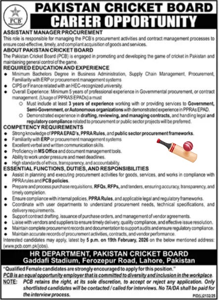 Pakistan Cricket Board (PCB) – Assistant Manager Procurement